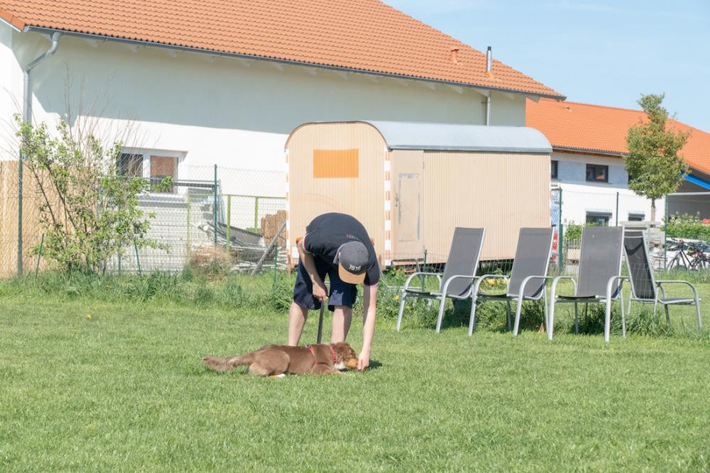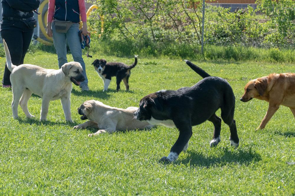 Labrador Welpen im KursIn dieser Stunde kann Ihr Hundekind Erfahrungen mit anderen Welpen machen, damit sein Sozialverhalten gut entwickelt und gefestigt wird. Dazu werden die Hunde beim Freispiel nach Größen in Kleingruppen eingeteilt, um zu verhindern, dass kleine Hunde von größeren umgerannt werden und dadurch schlechte Erfahrungen mit anderen Welpen machen. Um dennoch den Umgang mit großen (und auch erwachsenen Hunden) zu erlernen, nimmt auch ab und zu ein gut sozialisierter erwachsener Hund am Freispiel teil. Auch lernt Ihr Vierbeiner hier bereits erste Grundkommandos. Des Weiteren zeigen wir Ihnen viele Ideen und Möglichkeiten zur Beschäftigung Ihres Hundes, damit Ihr Welpe eine gute Bindung und Beziehung zu Ihnen aufbauen kann. Bei ersten gemeinsamen Außentrainings werden Alltagssituationen (z.B. beim Gassi gehen) geübt.